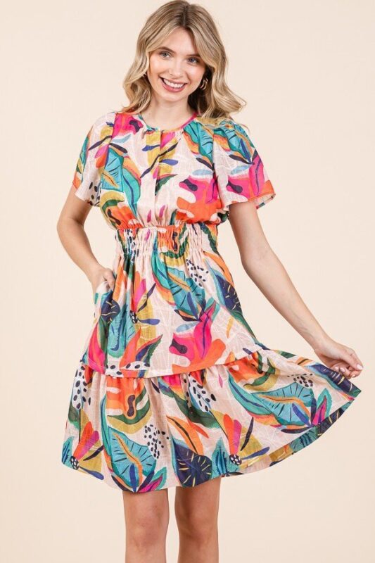 Lime ‘N’ Chili Abstract Print Mini Dress in Fuchsia Combo