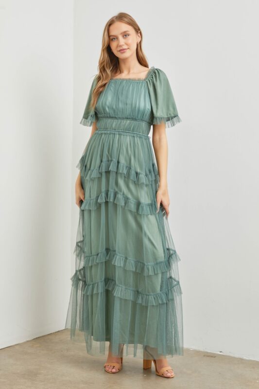 Umgee Tiered Midi Dress with Ruffled Sleeves in Black ON ORDER